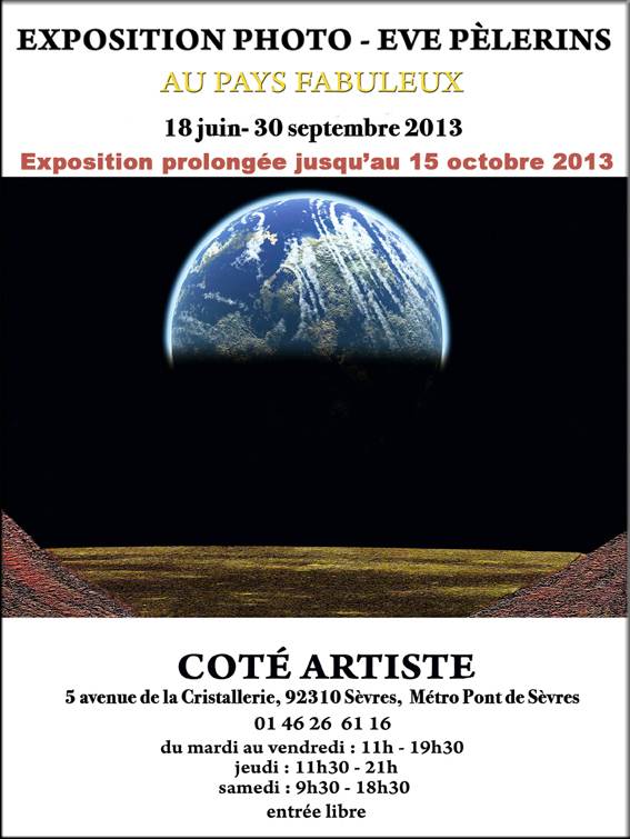 2 mars - 30 avril 2012 ESPACE SAINT-MARTIN 199 bis rue Saint-Martin 75003 Paris ![]() 19 - 31 décembre 2011 GALERIE du COLOMBIER Village Saint-Honoré 91 rue Saint Honoré 75001PARIS 06 08 14 46 50 01 42 36 03 46 ![]() 13 septembre -15 décembre 2011 COTÉ ARTISTE 5 rue de la Cristallerie, 92310 SÈVRES 01 46 26 61 16 ![]() 16 septembre 2010 - 20 juin 2011 HERTFORD BRITISH HOSPITAL 3 rue Barbès, 92300 LEVALLOIS PERRET 01 46 39 22 22 2 - 21 février 2011 ESPACE ART GALLERY 35 rue Lesbroussart 1050 BRUXELLES 8 - 24 octobre 2010 46e SALON d´ARTS PLASTIQUES de l´ADAC Espace Maison Blanche 2, avenue Saint Exupéry 92320 Châtillon ![]() 24 septembre - 3 octobre 2010 SEL Salon Transparences organisé par LA SEVRIENNE des ARTS 47 Grande Rue 92310 Sèvres ![]() 13 mai - 13 juin 2010 PARC FLORAL de PARIS Bois de Vincennes 75012 Paris ![]() 7 - 13 mai 2010 MAISON DES VINS de CHEVERNY et COUR-CHEVERNY ![]() 2 février - 3 mars 2010 ESPACE SAINT-MARTIN 199 bis rue Saint-Martin Paris 3e ![]() 15-20 décembre 2009 MEDIATHÈQUE de MEUDON LA FORET ![]() 30 mai - 28 juin 2009 ORANGERIE du CHÂTEAUde MEUDON 24 septembre - 5 octobre 2008 ATRIUM de CHAVILLE 3 parvis Robert Schuman 92370 Chaville 01 47 09 70 70 ![]() www.evepelerins.com