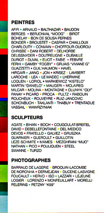 18 Juin - 30 Septembre 2013 COTÉ ARTISTE 5 avenue de la Cristallerie 92310 Sèvres EXPOSITION PROLONGÉE JUSQU'AU 15 OCTOBRE 2013 ![]() 19 juin 2012 - 19 juin 2013 HERTFORD BRITISH HOSPITAL 12 rue Barbès 92300 LEVALLOIS PERRET exposition collective ![]() 2 mars - 30 avril 2012 ESPACE SAINT-MARTIN 199 bis rue Saint-Martin Paris 3e